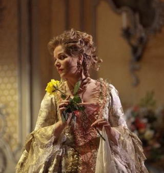 5.「薔薇の騎士」の儀式としてゾフィーに銀の薔薇を手渡すオクタヴィアン。この歌手の方が青年ぽくっていいね。上の歌手じゃおばさんみたい。