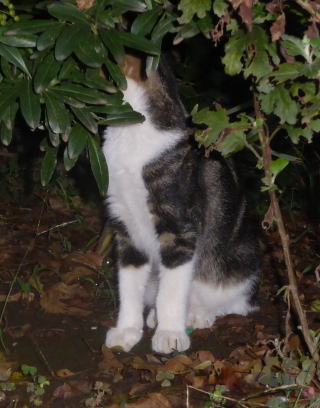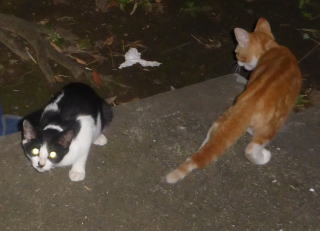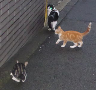 33.ダメだ。黒珍獣ちゃん。10m先には茶虎白の雄猫を追い払ったばかりの凶暴な悪ガキ九郎ちゃんがいる。