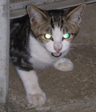 7.後でわかりましたが母親が銀系のアメリカン・ショートヘアのクラシック・タビーでした。他にサビ柄の姉妹がいました。と言う事は父親は茶毛の南方系の猫のはず。この珍獣は草むらをピョンピョン跳ねていた。東南アジアの熱帯ジャングルで木の上を跳ねている猫のようだ。手足が長いのは木の上を跳ねるため。