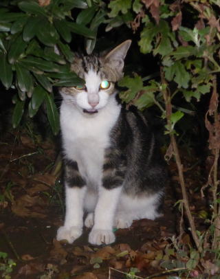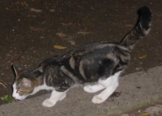 12.地味な薄色な三毛の姉妹も歩きにくい草むらで跳ねていたね。一目には普通の明るさなのに写真を撮るとこの暗さなんだね。