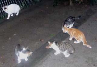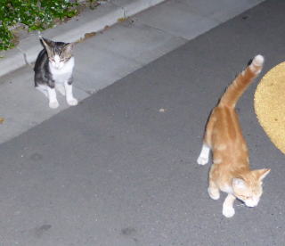 32.自己主張も強く身体能力も高い珍獣ちゃん姉妹。オクタヴィアンちゃんを襲い焼き鰹を横取りして食べている。居候のクーちゃんは仕方ないがオクタヴィアンちゃんが可哀相。...まるでオクタヴィアンちゃんは親父狩りにあったみたいだ。