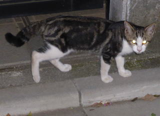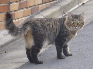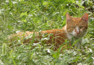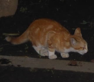 13.珍獣ちゃんも成猫すれば顔も発達してこんな感じになるはずです。と言うか、この若くて綺麗なオレンジ・タビーキャットって感じの猫が父親で、銀系のアメリカン・ショートヘアのクラシック・タビーの母親となら珍獣ちゃんが産まれても不思議ではありません。珍獣ちゃんと母親は一緒にいたからすぐ分かりましたが、父親とは一緒にいないから判断するのは難しい。しかし、あざやかなオレンジ色の毛並みですね。アビシニアン系のオレンジ・タビーキャットの貴公子って感じです。あくまで父親(候補)ですが、個人的には99%以上の確率だと思います。