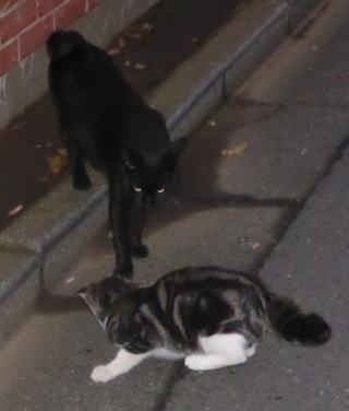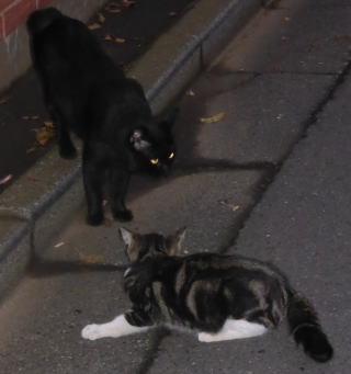 36.負け猫の体勢の黒珍獣ちゃん。悪ガキ九郎ちゃんは雌猫や子猫でも平気で襲う凶暴な猫。怪我をする前に視線に入ったらすぐ逃げようね。