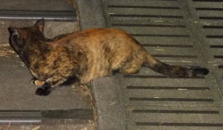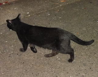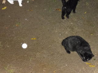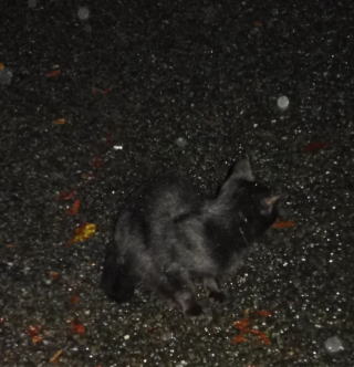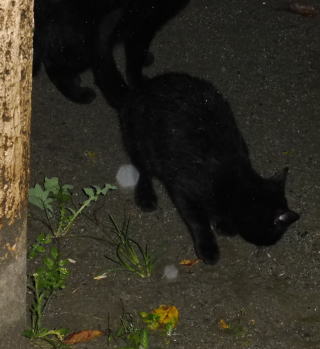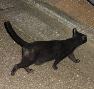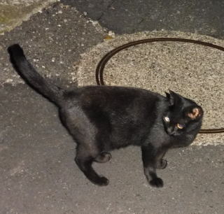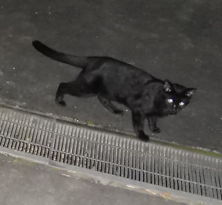 13.行動範囲の広い黒猫三姉弟の(仮名)黒猫Aちゃん。今夜はこんな離れた場所にいました。