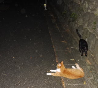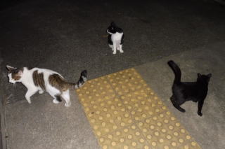 5.茶子ちゃん一派の集会に参加する茶珍獣ちゃん。ちなみに手前の黒猫は黒猫三姉弟の(仮名)黒猫Bちゃん、後ろは(仮名)黒猫Cちゃんです。