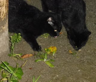 3.野生の黒豹が森林に隠れる様に藪に隠れる黒猫三姉弟の(仮名)黒猫Aちゃん。東京にもこんな藪があったんですね。