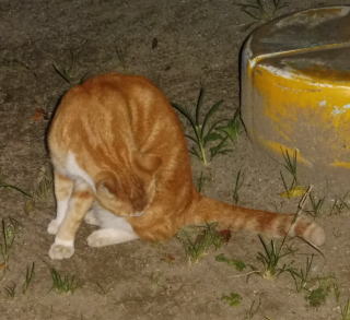 34.茶珍獣ちゃんも時々、茶子ちゃん一派のネコの集会に参加して他の雌猫と親睦を深めています。
