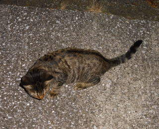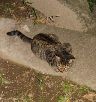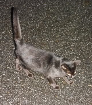 45.この子猫は(仮名)キジ虎Bちゃんです。夜な夜な自宅を抜け出し九郎ちゃんに会いに行くか茶子ちゃん一派のネコの集会に参加します。