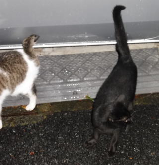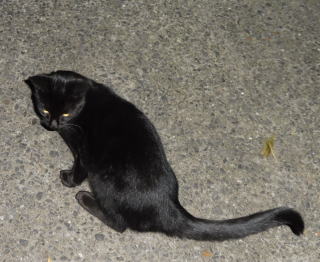30.黒猫三姉弟の(仮名)黒猫Bちゃんの尾は体長と同じ位長いのですね。