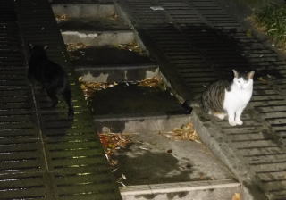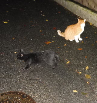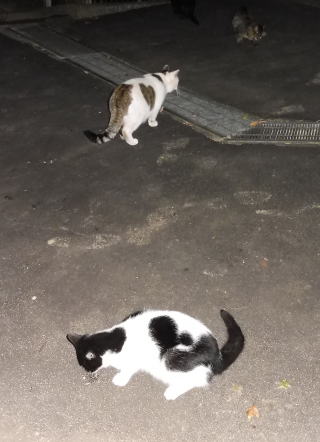 1.(仮名)黒白猫Aちゃんは九郎ちゃんに縄張りを追放されてから、こんなに離れた場所で茶子ちゃん一派に加わってしまいました。