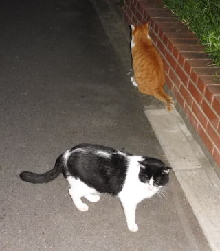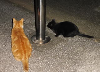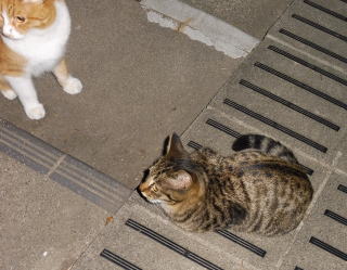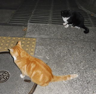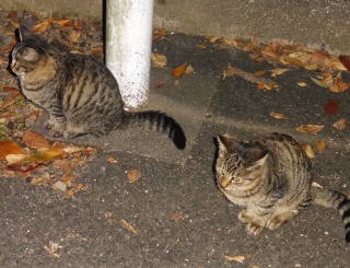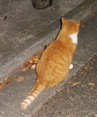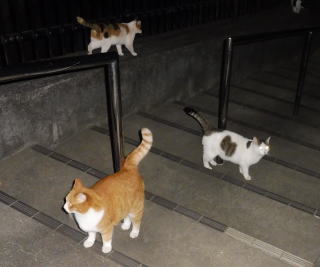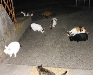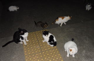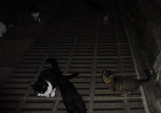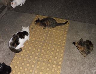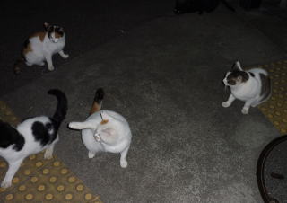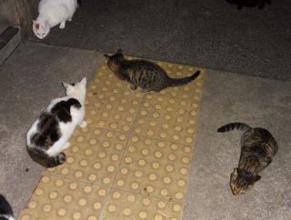 38.何か食べる物があるのでしょうか?茶子ちゃん一派のネコちゃん達は何か食べている様にも見えます。
