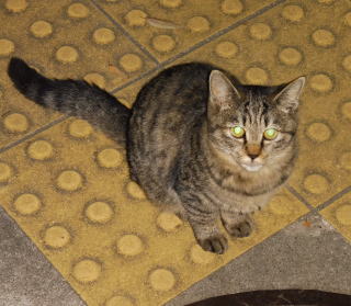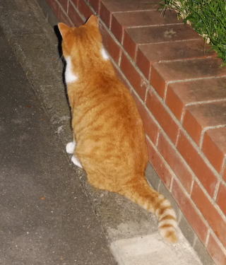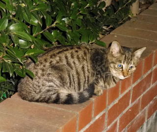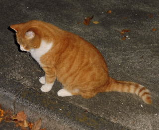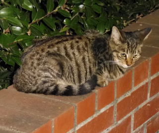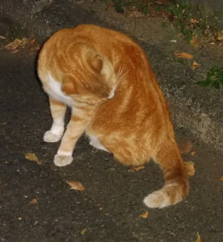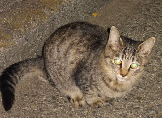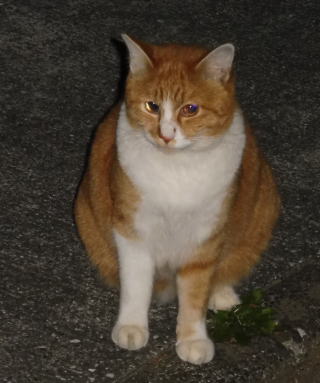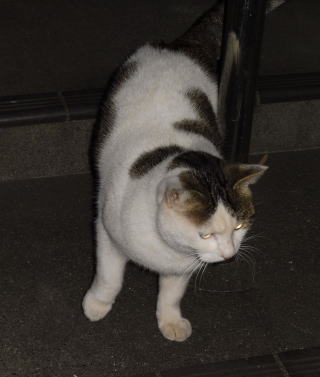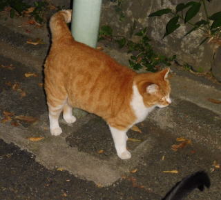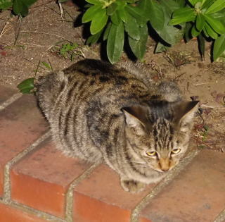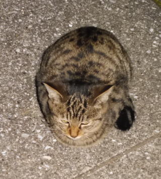 5.「ボス。こんばんわ」と(仮名)キジ虎Cちゃんが挨拶しています。