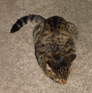 11.日本猫から見ると1.5~2倍弱もある長い胴体は成猫になれば確実に60~70cmくらいになるのでしょう。この子は(仮名)キジ虎Aちゃんです。