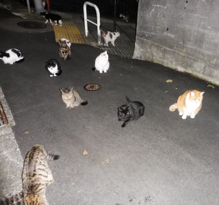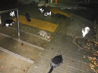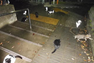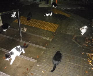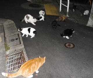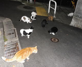 2.このネコちゃんの集会に参加するネコちゃんは昼間はどこにいるのでしょうか?全く見当たりません。数百m先から来ているのかもしれません。