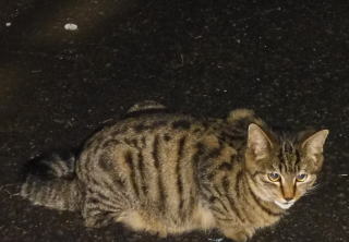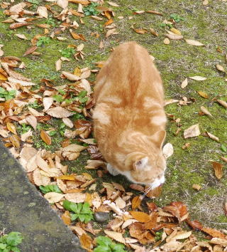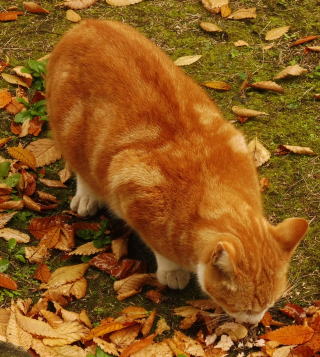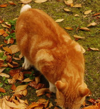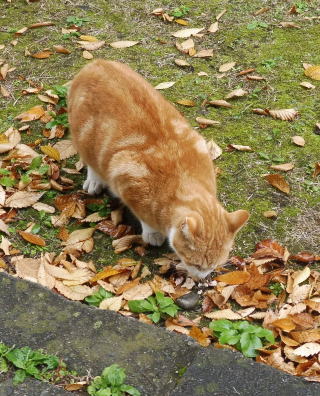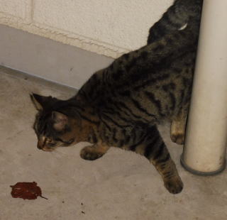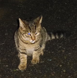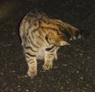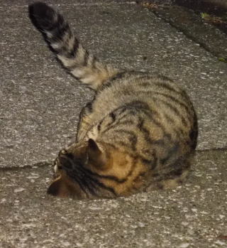 25.(仮名)キジ虎Cちゃんは焼き鰹を食べる時に「ウマァ、ウマァ、ウマァ」と声を出して食べます。これはネコ語で「美味しい」と言って食べています。声を出して食べるのは野良猫ではなく家猫の印です。野良猫の場合は丸呑みに近い形で焼き鰹を飲み込んで素早く立ち去ろうとします。丸呑みした時にむせて吐き出すネコちゃんまでいます。