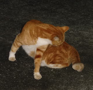 19.パパが(仮名)キジ虎Aちゃんに注目する内に茶珍獣ちゃんが厭きて毛繕いをはじめてしまいました。
