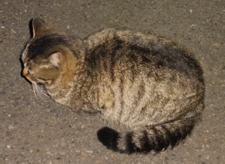 24.地域のボス猫の茶子ちゃんも平面的な顔立ちと前後に押しつぶした様な体長が短い体型をしています。普通の家猫のルーツとされるリビア山猫より北米大陸の大山猫に顔立ちや体型が近いのかもしれません。