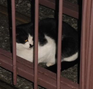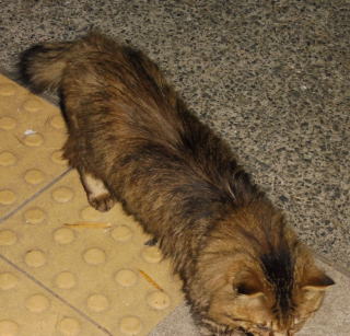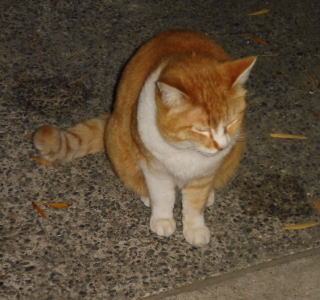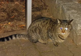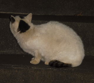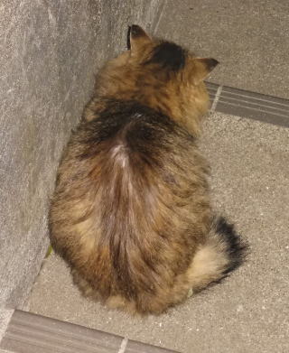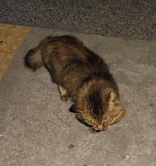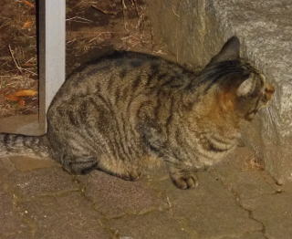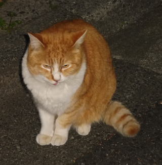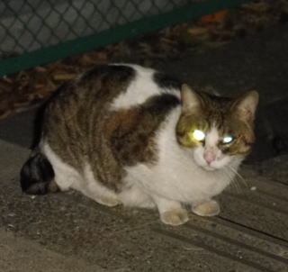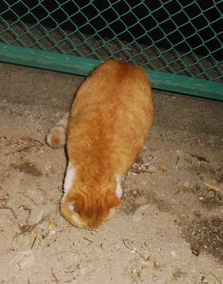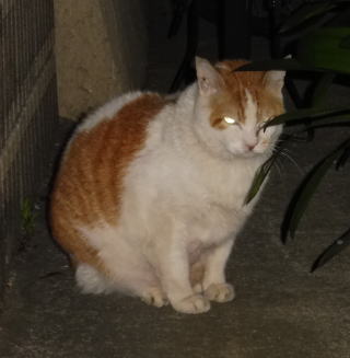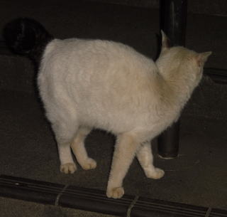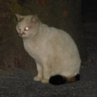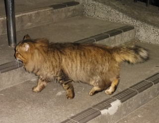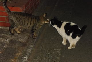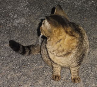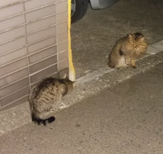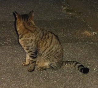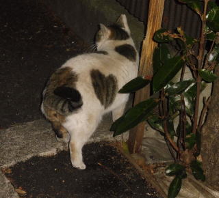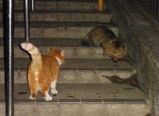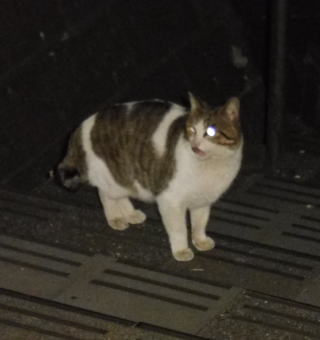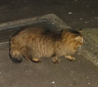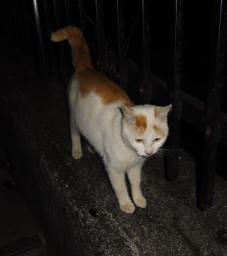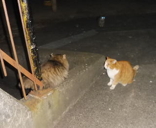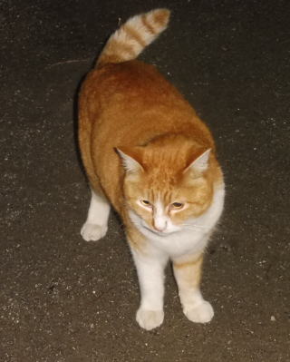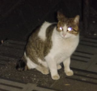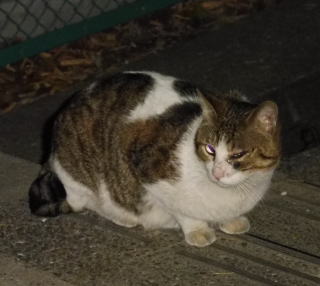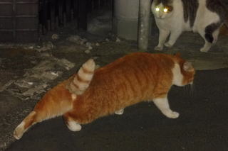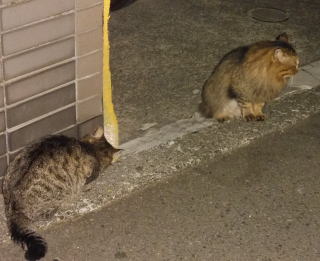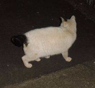 8.小柄な日本猫のマルシャリンちゃんは楽ちゃんの友達です。深夜に良く二匹並んで道を歩いています。