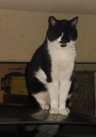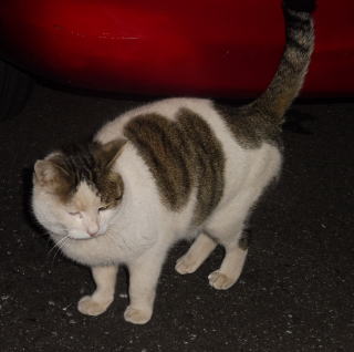 12.楽ちゃんが自宅を出てパパの自宅の駐車場に通い猫に来てくれました。楽ちゃんは平面顔で立派な顎鬚をしている人間の男性の顔の様にも見えます。