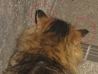 上記のアップ。「楽ちゃんの耳にリンクス・ティップ(山猫の耳毛)があるぞ」とパパは気付きました。因みにリンクス・ティップ(山猫の耳毛)とは大山猫の耳に付いている風や空気を感じる一種のセンサーであり家猫ではメーン・クーン種の特徴のひとつです。
