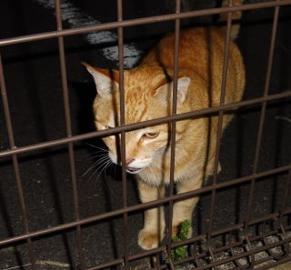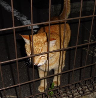 鉄檻越しにパパとデートするチャトランちゃん。ふと耳を見るとリンクス・ティップ(山猫の耳毛)が付いていました。家猫でこれがあるのはメーン・クーン種と親戚のアメリカン・ボブテイル種のみのハズ。チャトランちゃんって一体何者なのでしょうか?。