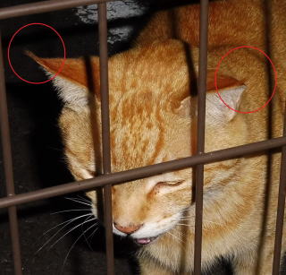 上記のアップ。チャトランちゃんの耳にリンクス・ティップ(山猫の耳毛)か付いていました。チャトランちゃんの顔をよく見ると逆五角形で鼻筋がなだらかで顎の位置が高い日本猫の茶虎猫と言うより、丸くて大きな輪郭で小さな鼻と口が付いているアメリカン・ショートヘア系の顔立ちをしていました。アメリカン・ショートヘア種はアメリカを代表するネコちゃんですがヨーロッパ人がアメリカに持ち込んだリビア山猫をルーツとする家猫です。何でメーン・クーン種やその親戚のアメリカン・ボブテイル種の特徴であるリンクス・ティップ(山猫の耳毛)をしているのでしょうか?。