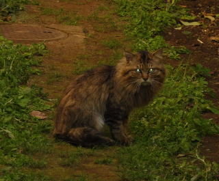 4.楽ちゃんはメーン・クーン種の獅子丸ちゃんから長毛を遺伝しましたが、一歳下のキジ虎三姉妹は中毛止まりです。チャトランちゃんも何分の一かはメーン・クーン種が混血していたのかもしれません。