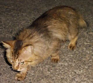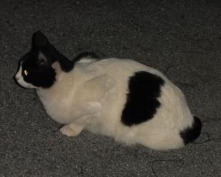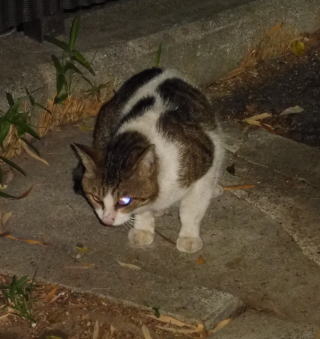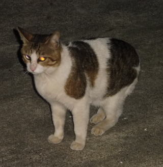 6.ここはパパの自宅の隣の家の私道です。深夜に茶子ちゃん一派のネコの集会に参加して早朝、自宅に戻る楽ちゃんです。