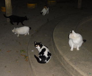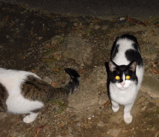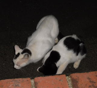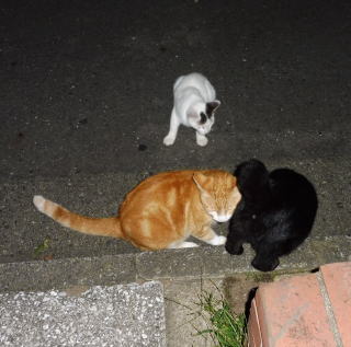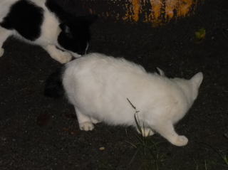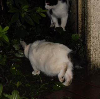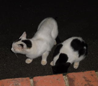 12.二年前は茶虎白のドラ猫のフミちゃんの旦那(ファニナル)が父親だった為、子猫は三毛猫が中心でした(サバ子ちゃんだけ別)。しかし今年はバンの白猫のマルシャリンちゃんと雄の黒白猫のカンカンちゃんの為、父親は黒白猫だったのかもしれません。カンカンちゃんの牛柄の黒白の毛柄と少しアメリカ系の顔立ちを考えるとオクタヴィアンちゃんの息子が可能性が高いのかもしれません。