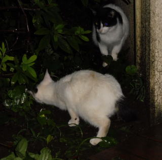 7.マルシャリンちゃんが何かを見つけた様です。一緒にいる雄の子猫はカンカンちゃんです。