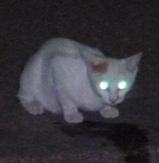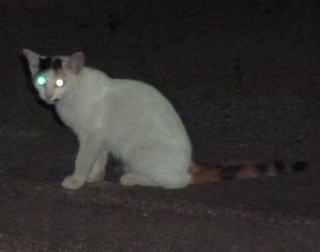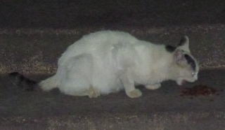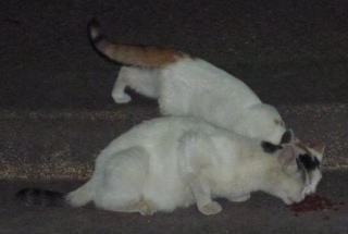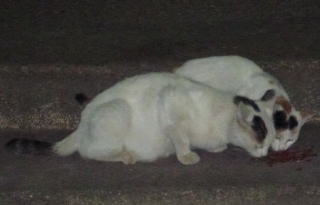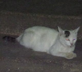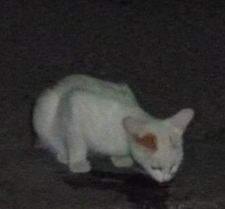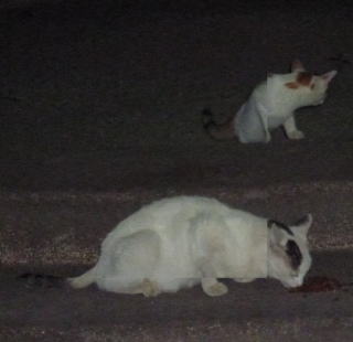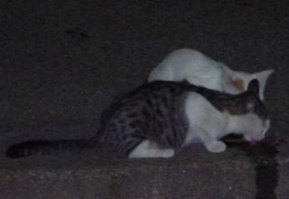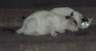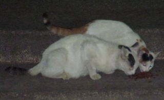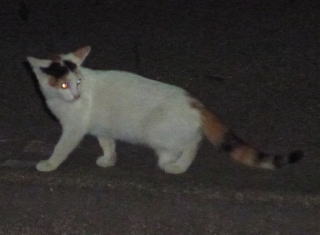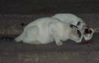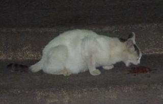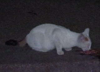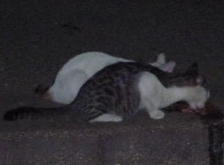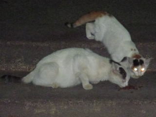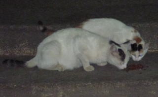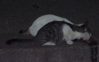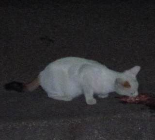 1.今夜は白三毛子ちゃんがご飯を食べている。