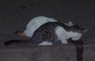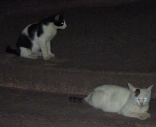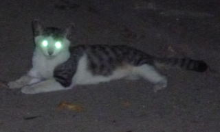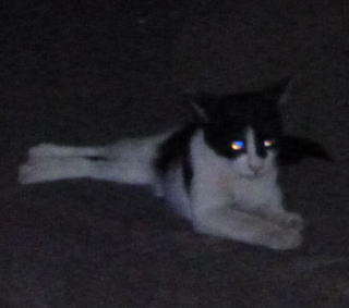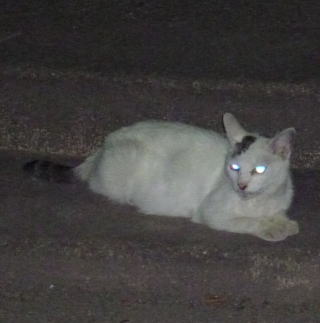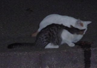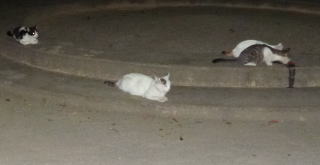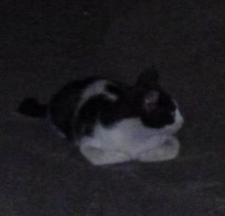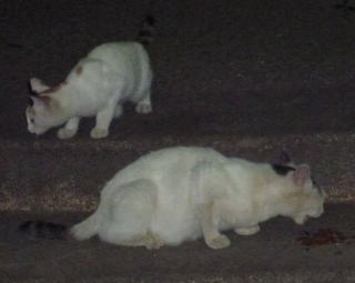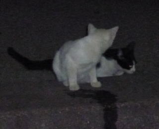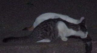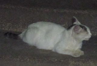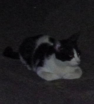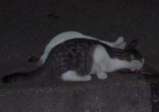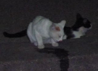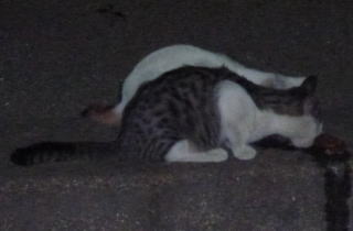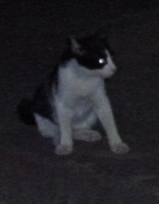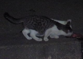 今夜はフミちゃん家族のご飯を狙う3で登場した黒白の中猫が周囲をうかがう。