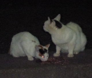 11.通行人が気になるフミちゃんとご飯が気になるリボンちゃん。