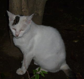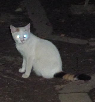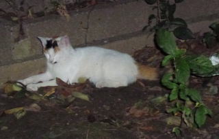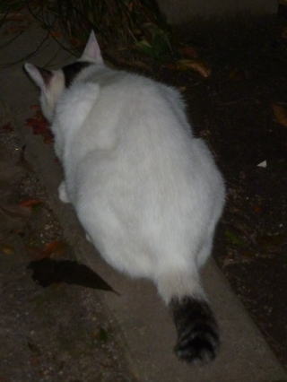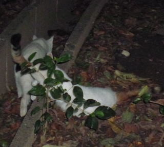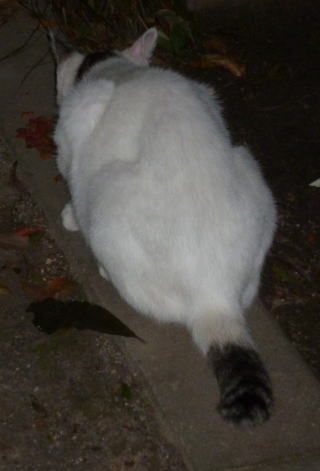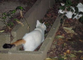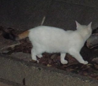 36.リボン(アンニーナ)ちゃんの前を横切ろうとする白三毛子(マリアンデル)ちゃん。