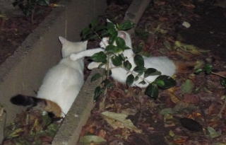 43.黒覆面の黒猫(オックス)も満腹の時は雌猫を威嚇しない。