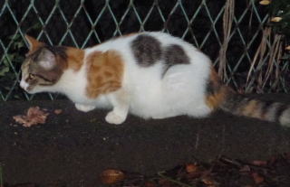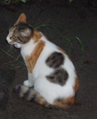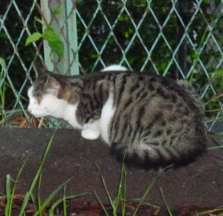 3.裏のサバ子を見る三毛子(ゾフィー)ちゃん。
