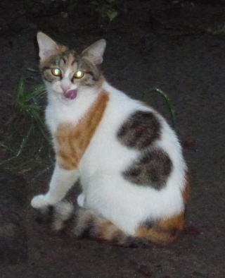 9.美味しかったね。舌を出してなめる三毛子(ゾフィー)ちゃん。