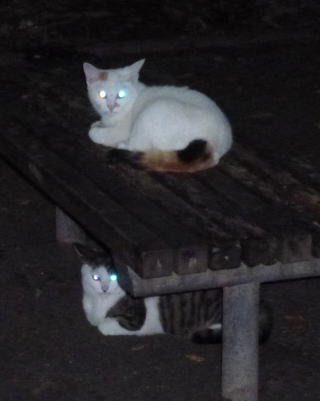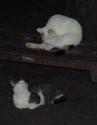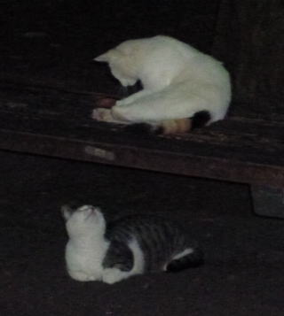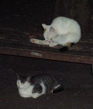 36.「私の跡を追いかけるストーカーの白三毛子(マリアンデル)とサバ子。夢見る事は自由よ」と百合ちゃん。