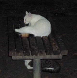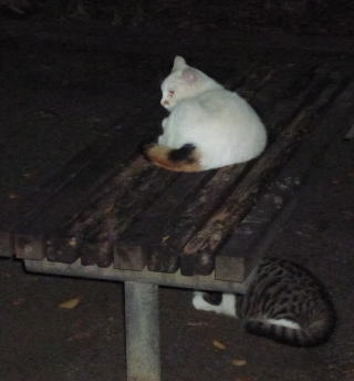 30.ベンチの上でくつろぐ白三毛子(マリアンデル)ちゃん。