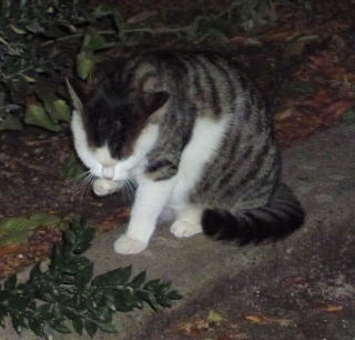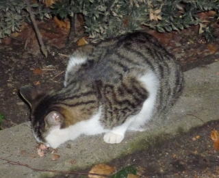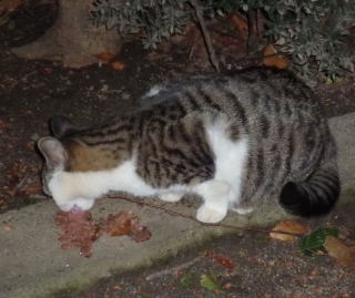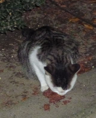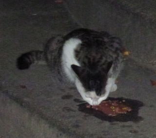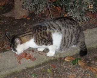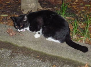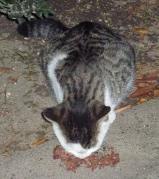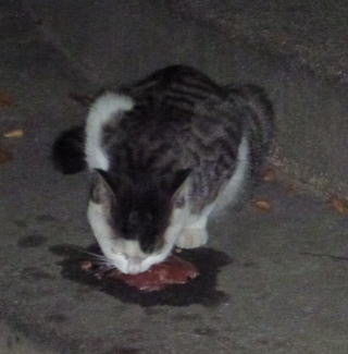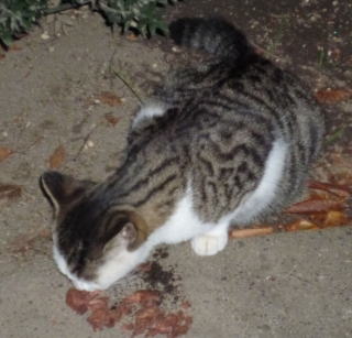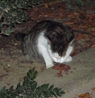 28.他に御飯があったから今回はサバ子ちゃんを威嚇しなかった黒覆面の黒猫(オックス)。