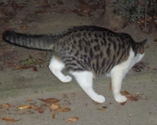 46.草食恐竜みたいに尾をピンとあげて歩くサバ子ちゃん。