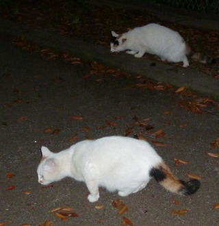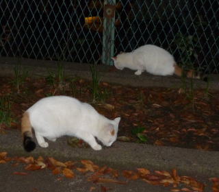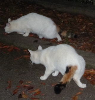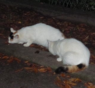 16.白三毛子(マリアンデル)ちゃんは三毛子(ゾフィ)ちゃんと鼻と鼻を合わせて挨拶する。姉妹なんだね。