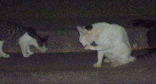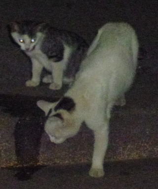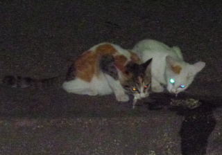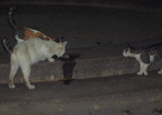 18.三毛と白三毛の子猫達が食べて。