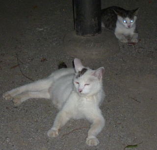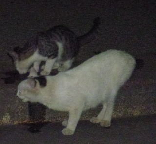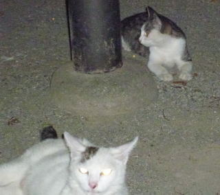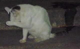 5.白三毛は隠れていて三毛は寝ているしサバ虎白は顔を洗い始めた。