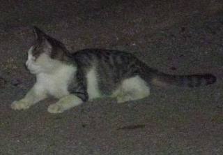 12.サバ虎白の子猫が座り込んだ。