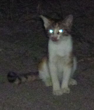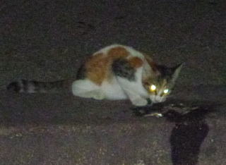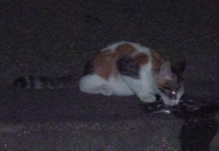 36.食べ終わった三毛の子猫。