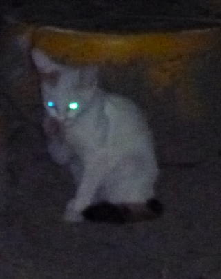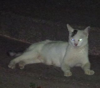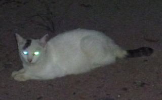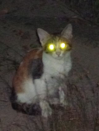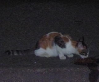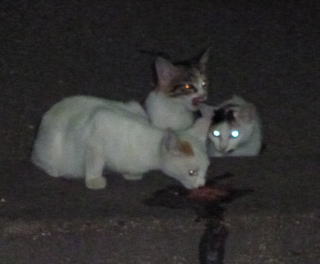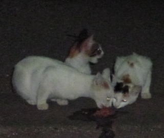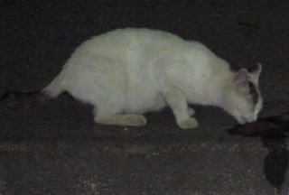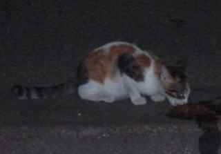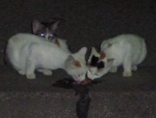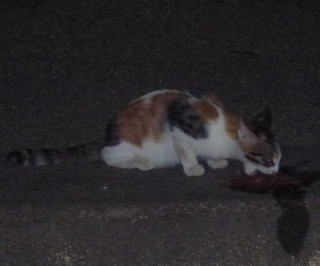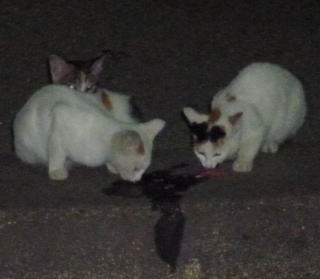34.白三毛子とリボンのウップンをはらす様に食べる三毛子ちゃん。
