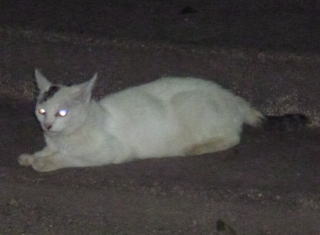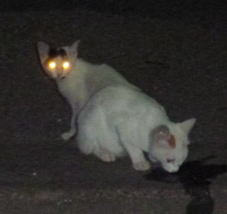 16.次はリボンちゃんのご飯を狙う白三毛子ちゃん。