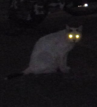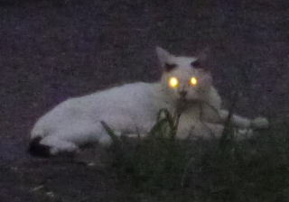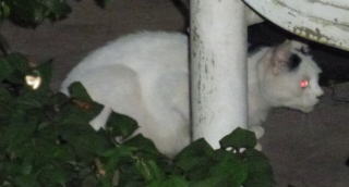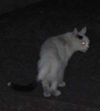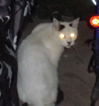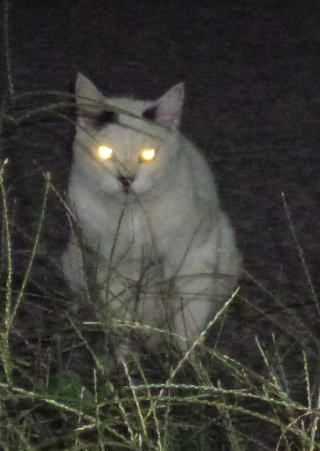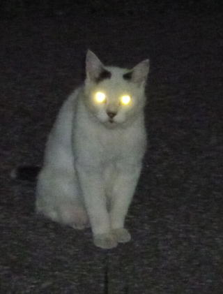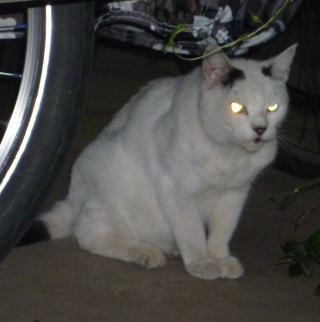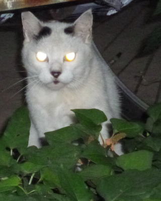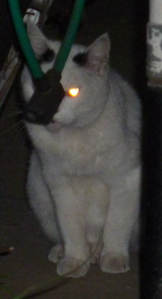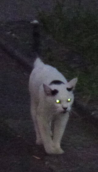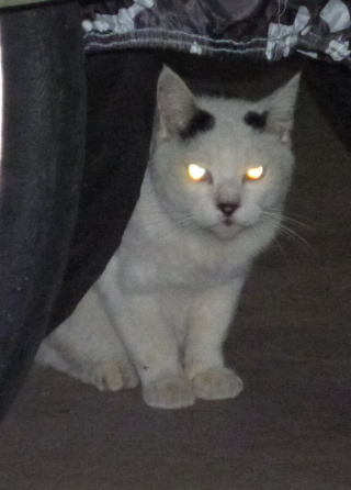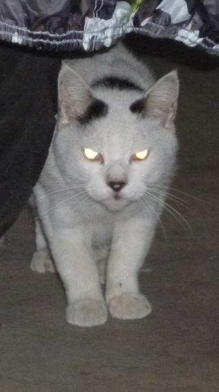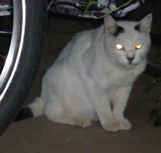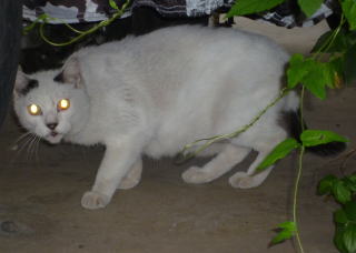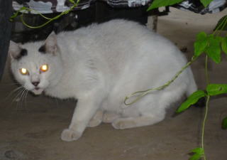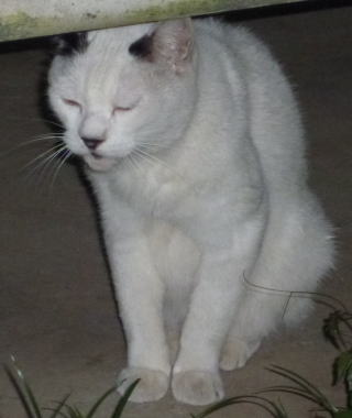 外国種の大きな猫。日本猫の雄よりデカい。7kg位あるかも...骨太で下半身が太い、毛柄は頭部に三か所の黒毛とサバ虎系の尾。尾の先のみ白のバンの白猫。日本猫と比較して毛の密度が高い。鼻や口の肌が黒い。普通の白猫は肌色なのに不思議な猫だからフーちゃん。ついでに挨拶代わりにフーと威嚇する時もあるからフーちゃん。大事な愛娘だ。