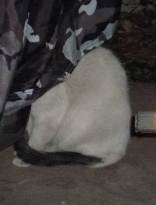 12.バイクカバーに隠れる。ここもフーちゃんの指定席の一か所。